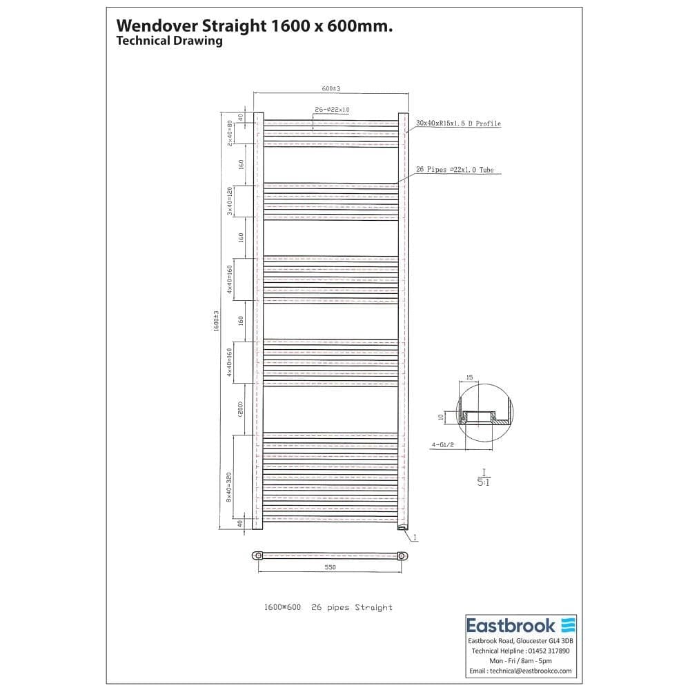 Practical and stylish, the Wendover from EASTBROOK is a modern ladder rail, available in a vast array of sizes, including 600 x 1200mm which is ideal for under window situation.
