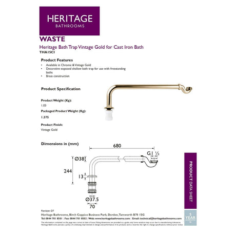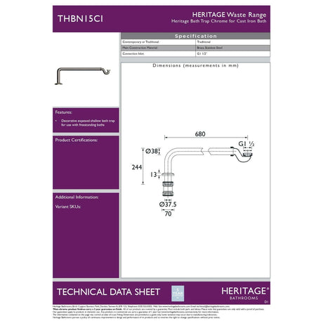 Heritage Exposed Bath Waste with Stowaway Plug and Chain