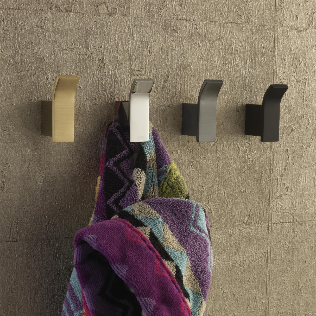 The single robe hook from the Ravello collection from SAGITTARIUS, has a bold square profile with gently rounded edges. It's available in four beautiful finishes - Chrome, Brushed Brass, Black and Graphite.
