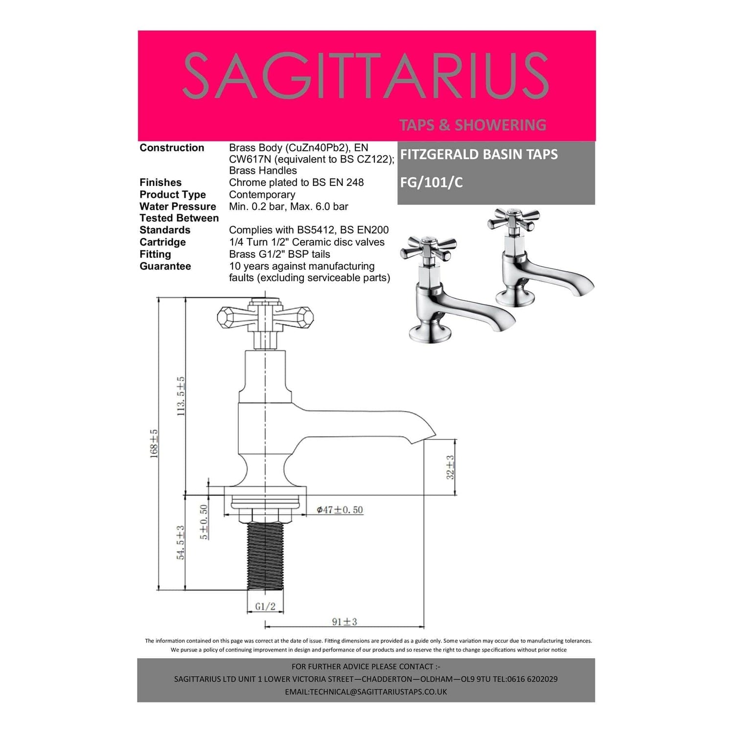Sagittarius Fitzgerald Basin Pillar Taps (Pair) in Chrome