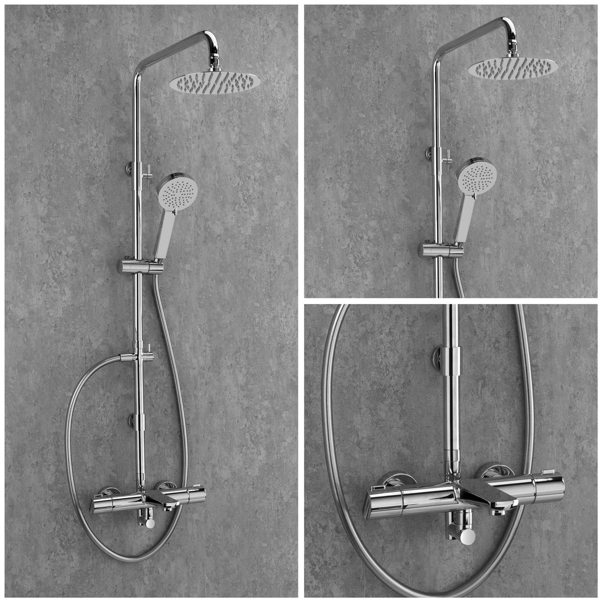 The Bari wall mounted thermostatic bath shower mixer and rigid riser kit is a functional and stylish option, offering the convenience and safety of a thermostatically controlled bath filler with an integrated shower set.