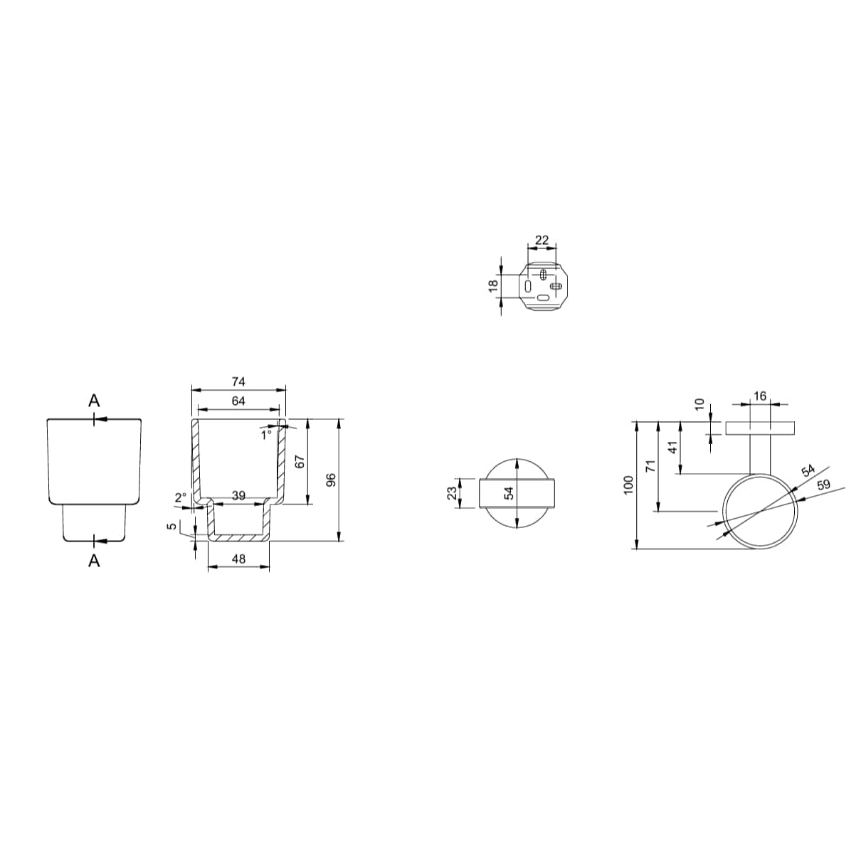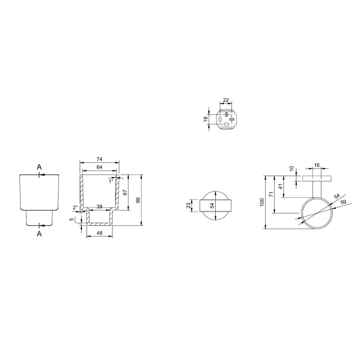 Elements Tender tumbler holder, available in four stunning finished classic chrome, matt black, brushed nickel matt and brushed gold.