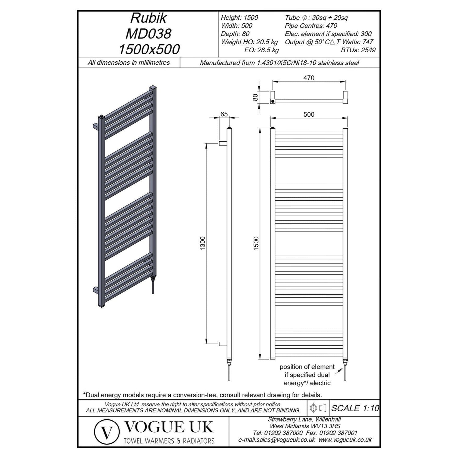 Dual Fuel - The towel rail has the capability to run from a central heating circuit or an electric element. Handy in the summer months when the central heating is turned off. Valves available separately.