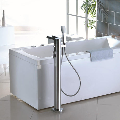 Flova Essence Floor Standing Bath and Shower Mixer with Shower Set in Diamond Chrome