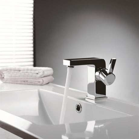 Flova Cascade Mini Basin Mixer Tap with Clicker Waste in Diamond Chrome
