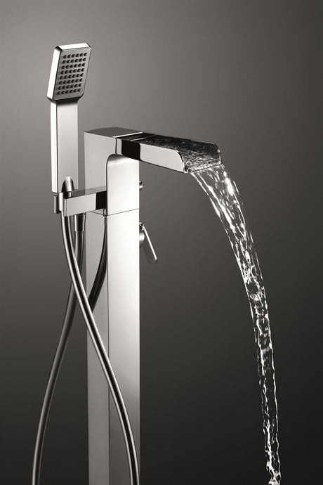 Flova Cascade Floor Standing Bath and Shower Mixer with Shower Set in Diamond Chrome