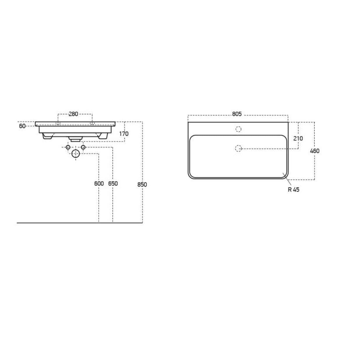 The Cornithe wall mounted vanity unit is available in three sizes, which all come with a single soft closing drawer, and comes complete with a ceramic one tap hole basin.