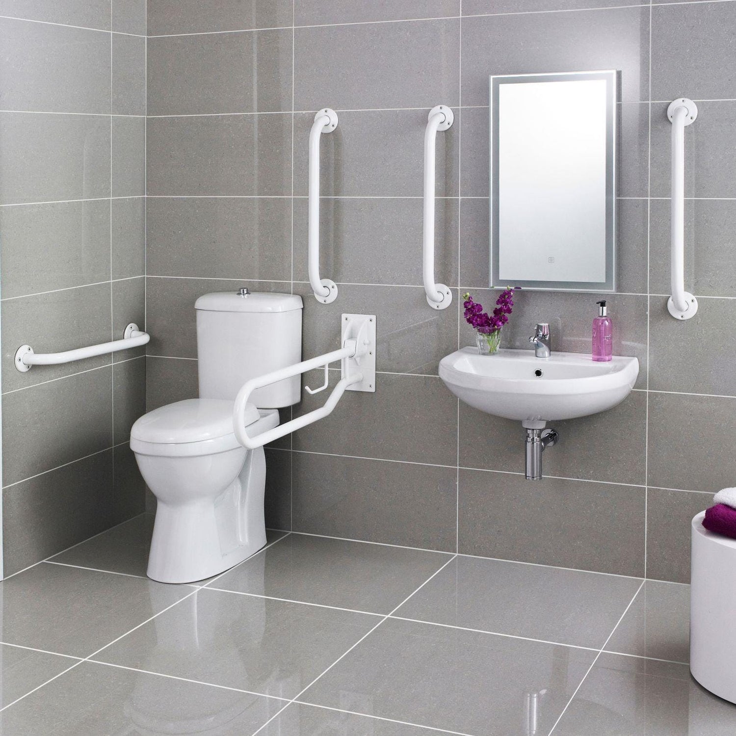 Please note: This pack is designed to comply with Doc M regulations for accessible bathrooms. We recommend installation by a qualified professional to ensure all rails are securely anchored for maximum safety.