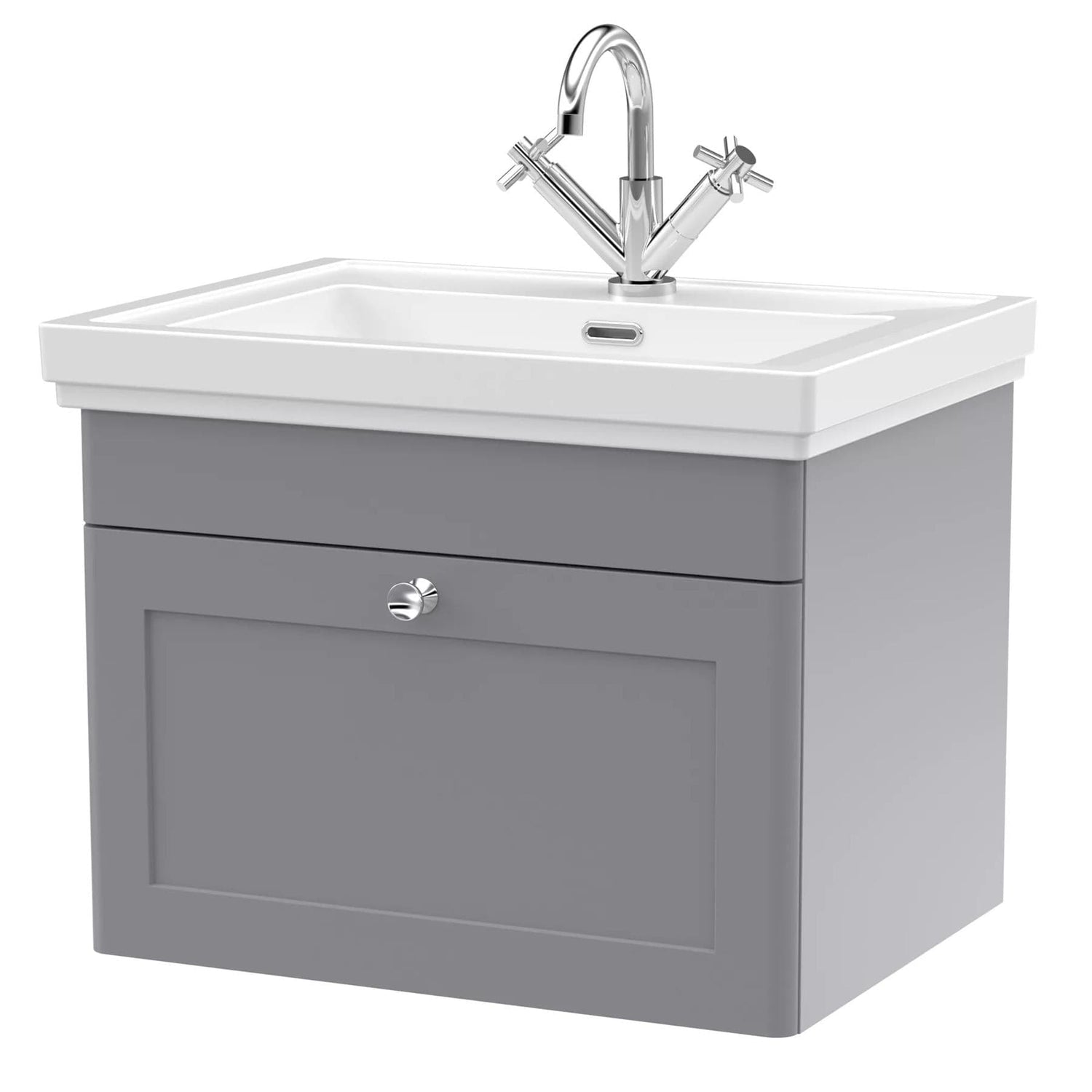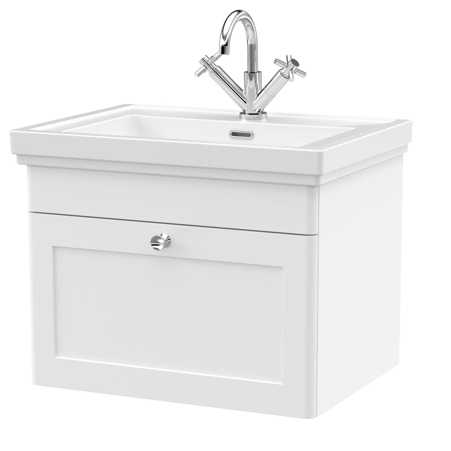 Part of the beautifully crafted Leighton collection from Aquarius Bathrooms, this 600mm wall mounted vanity unit with basin draws inspiration from the grandeur and refined detailing of traditional English stately homes. Classic styling is blended with modern functionality, creating a timeless piece that suits both period and transitional bathroom designs.