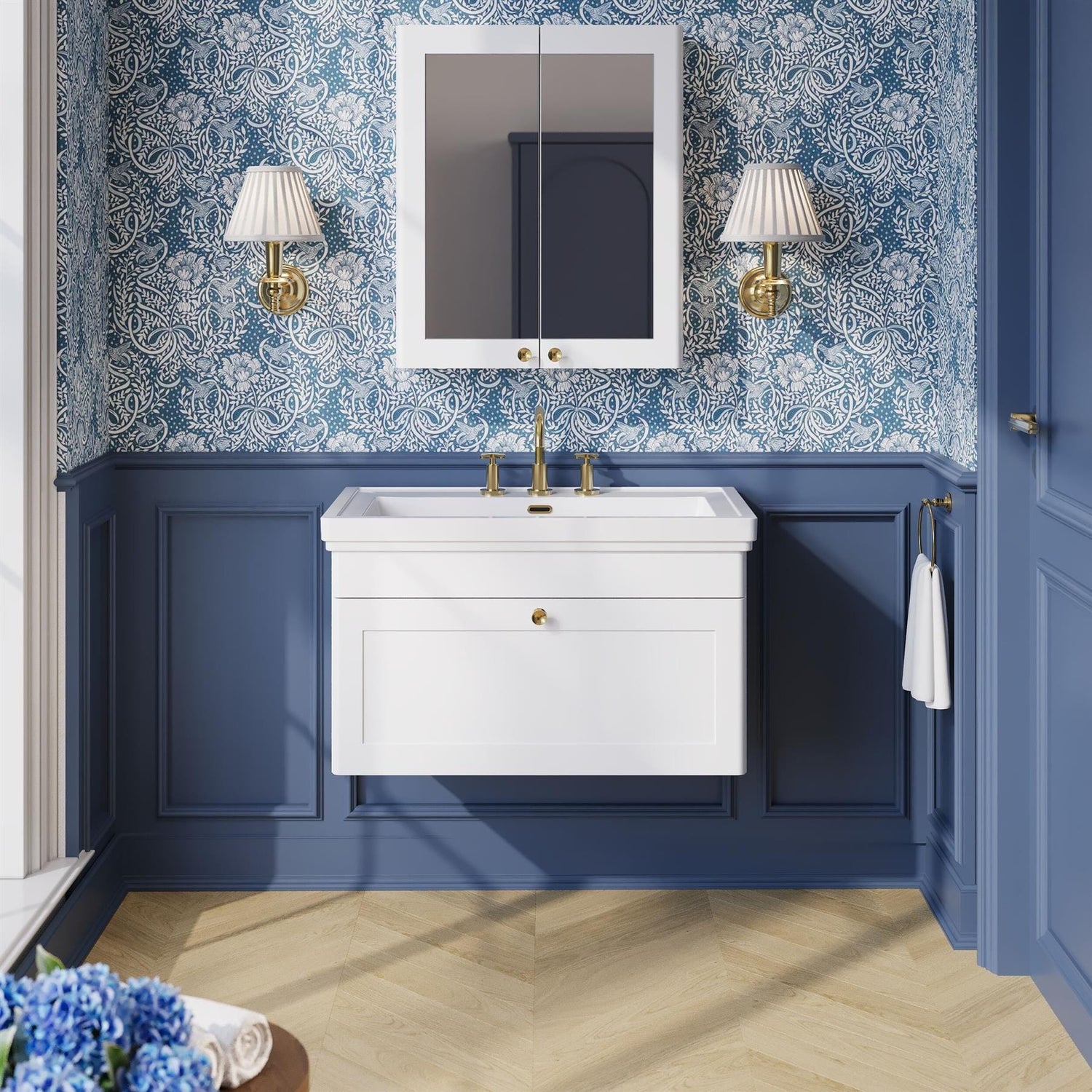 - 800mm wall mounted vanity unit with elegant traditional styling