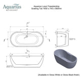 Aquarius Luxor Freestanding Soaking Bath Tub - 1650 x 745mm - Gloss Black