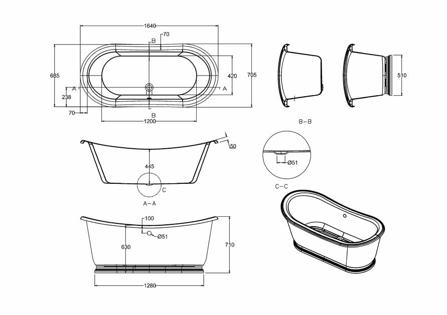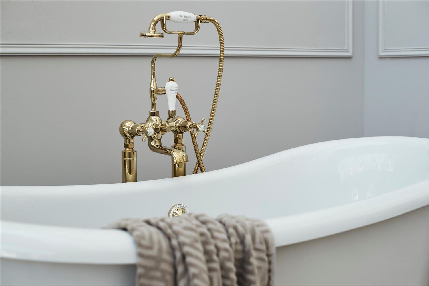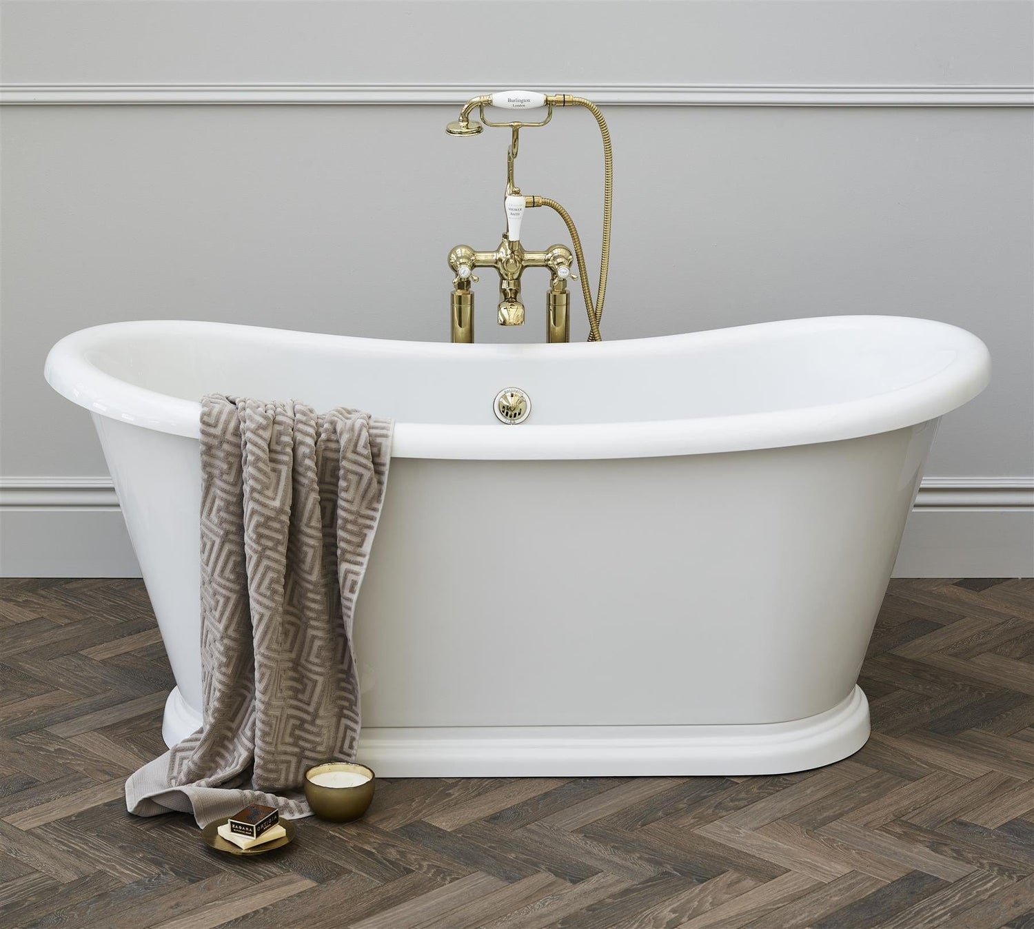 The stately Admiral Soaking Tub from BURLINGTON combines elegant Victorian period styling with a modern touch. Its double-ended, curvaceous, freestanding design will make a striking centrepiece for any traditional bathroom.