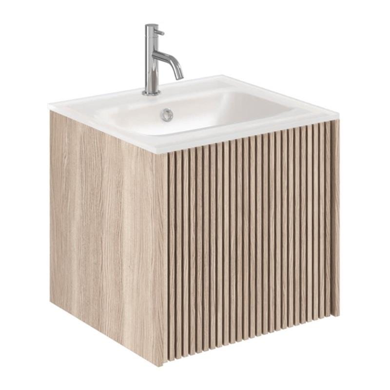 Available in four exceptional finishes, including Steelwood, Modern Oak, Royal Walnut and Warm Stone, this unit integrates seamlessly into any modern bathroom design. Finished with a choice of basins, this unit provides a complete wash area perfect for a contemporary layout. Sitting flush with the furniture, this basin gives a sleek finishing touch to your furniture unit. The subtle curvature of the basin keeps a calming aesthetic in your bathroom by removing any harsh angles.