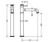 MPRO Industrial Tall Mono Basin Tap, available in Chrome, Carbon Black and Unlacquered Brushed Brass*, Waste available separately.