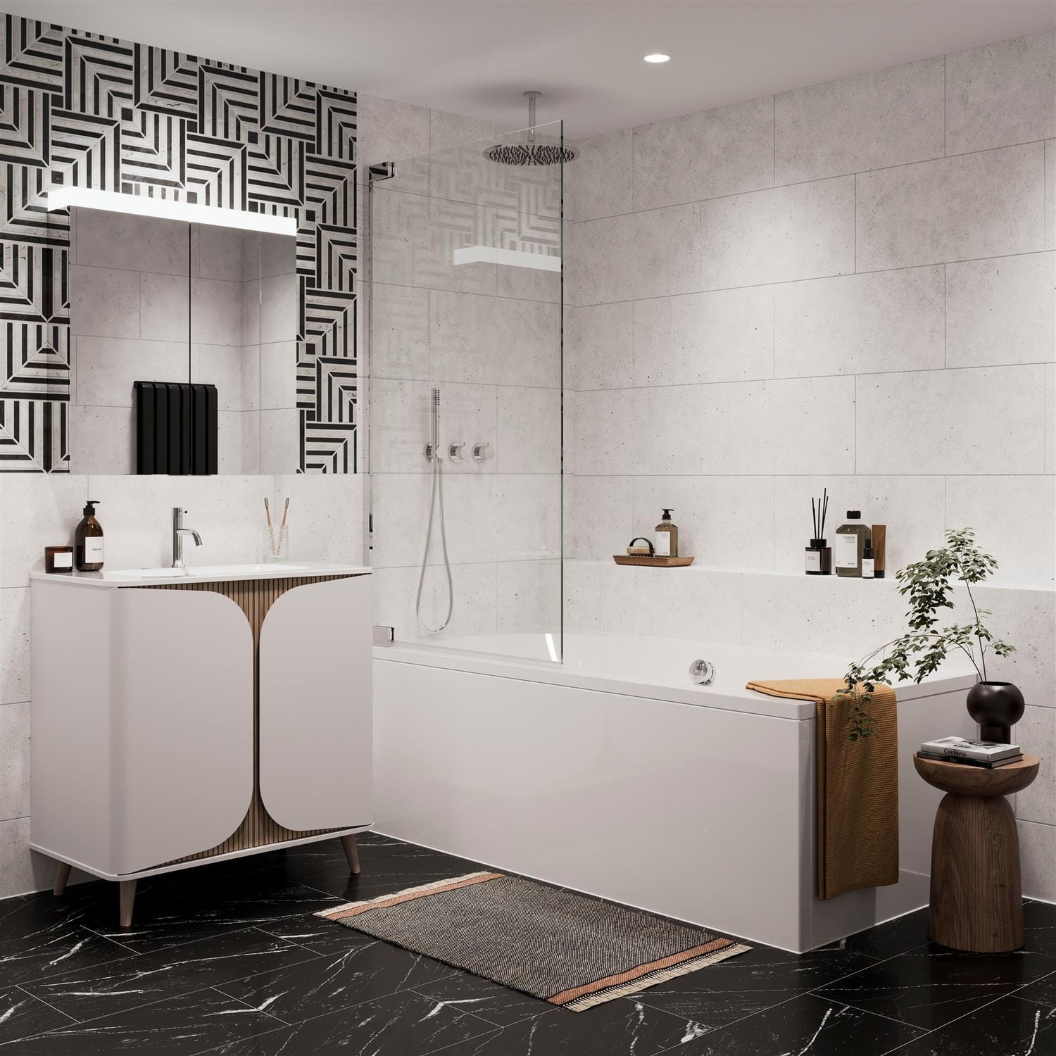 Make a statement in your modern bathroom design with the Tambour collection from Crosswater. This unique furniture unit features a striking contrast of a light wood fluted detail and a smooth, rounded front. Bringing intriguing design into your bathroom, this vanity unit is ideal for the modern home.