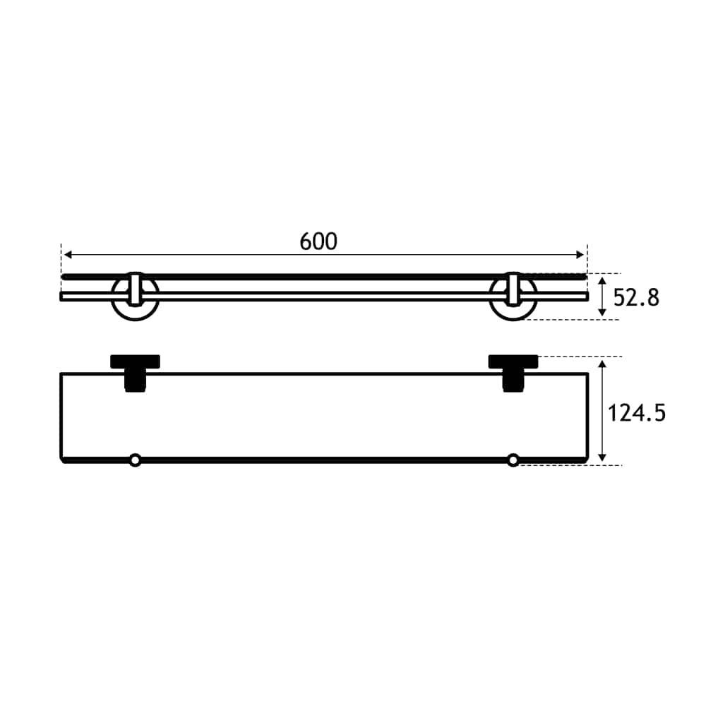 Catania glass shelf manufactured with solid brass and glass, available in a bright brushed brass and matt black finish.