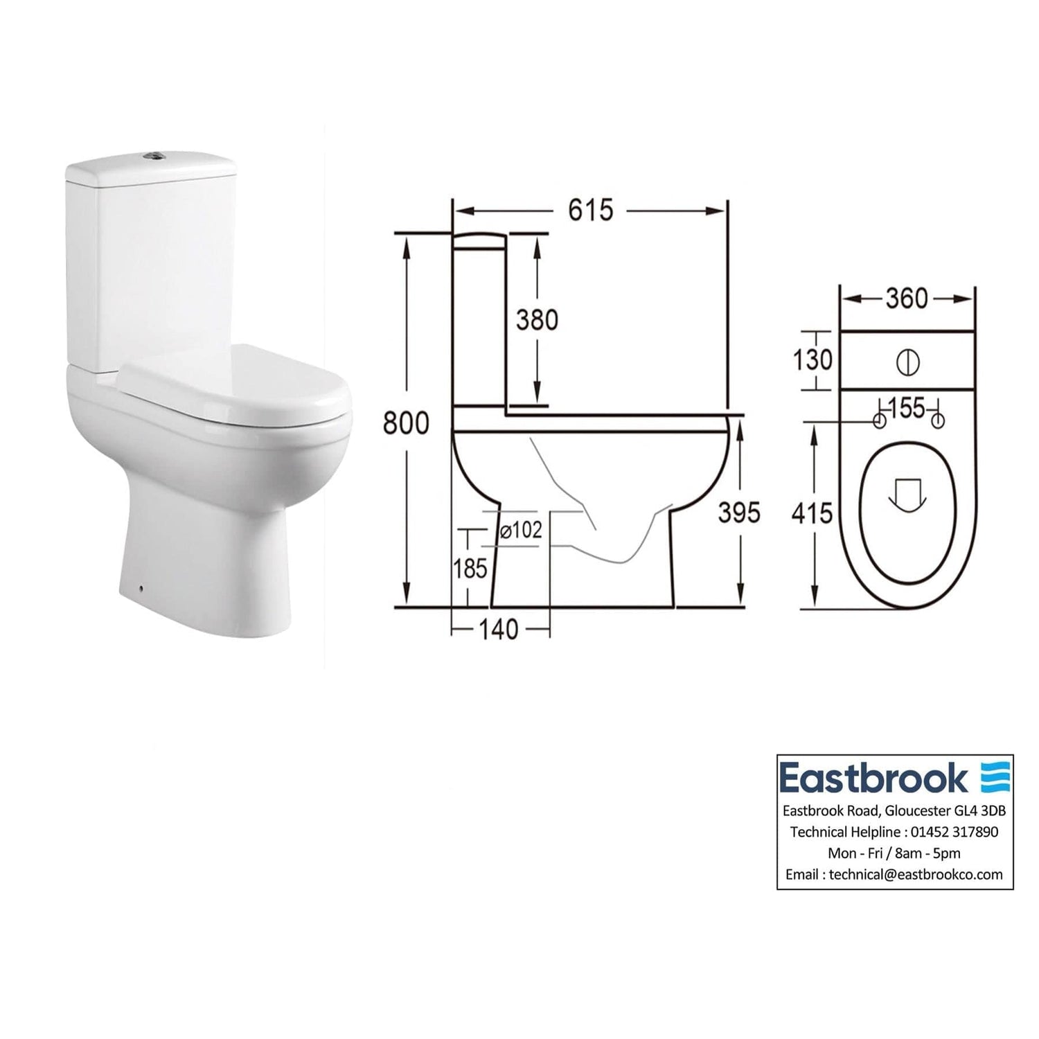 Eastbrook Dura Rimless Close Coupled Toilet with Eco Vortex Flush and Soft Close Seat