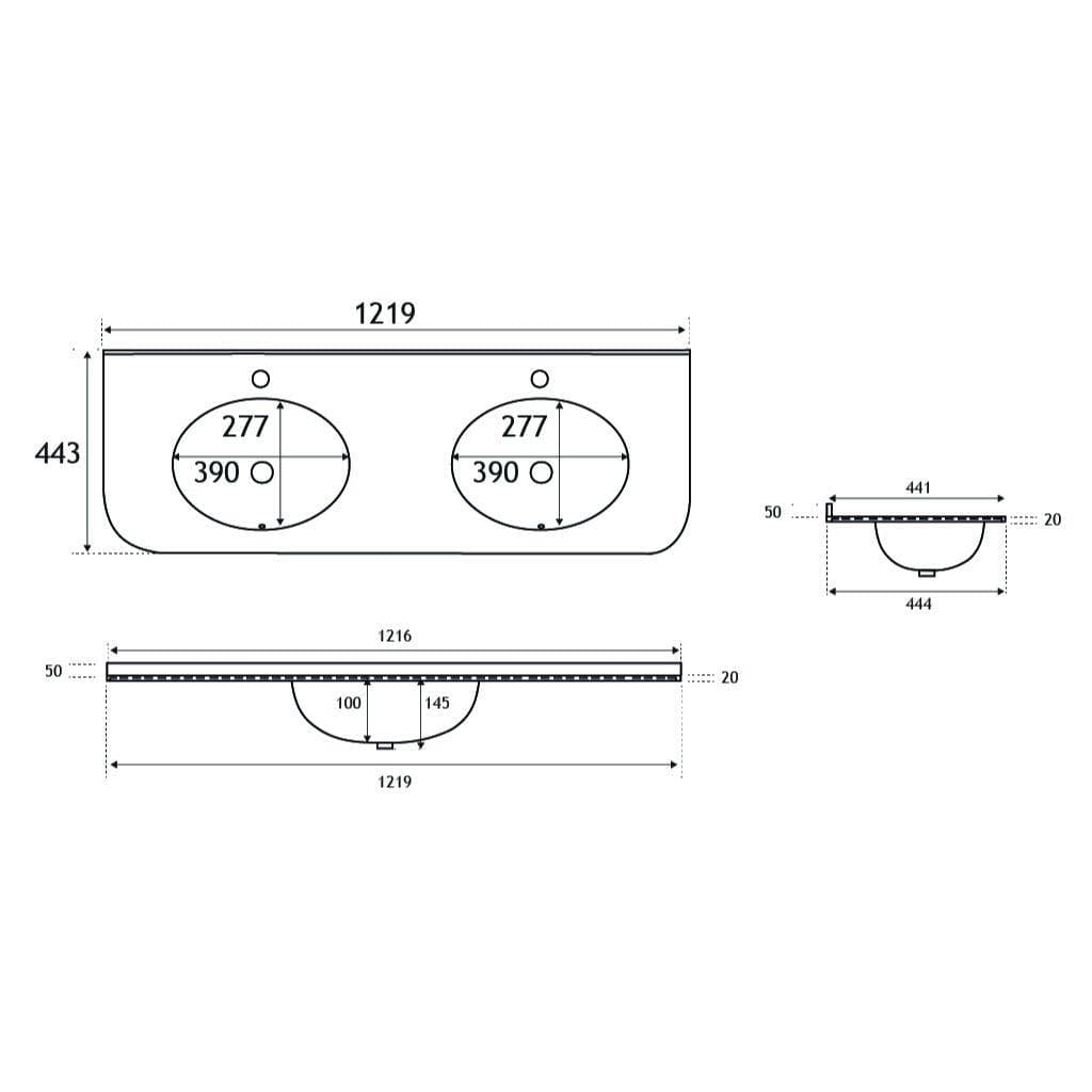 Eastbrook Hardwick Traditional 1200mm Wall Hung Vanity Unit with Double Basin