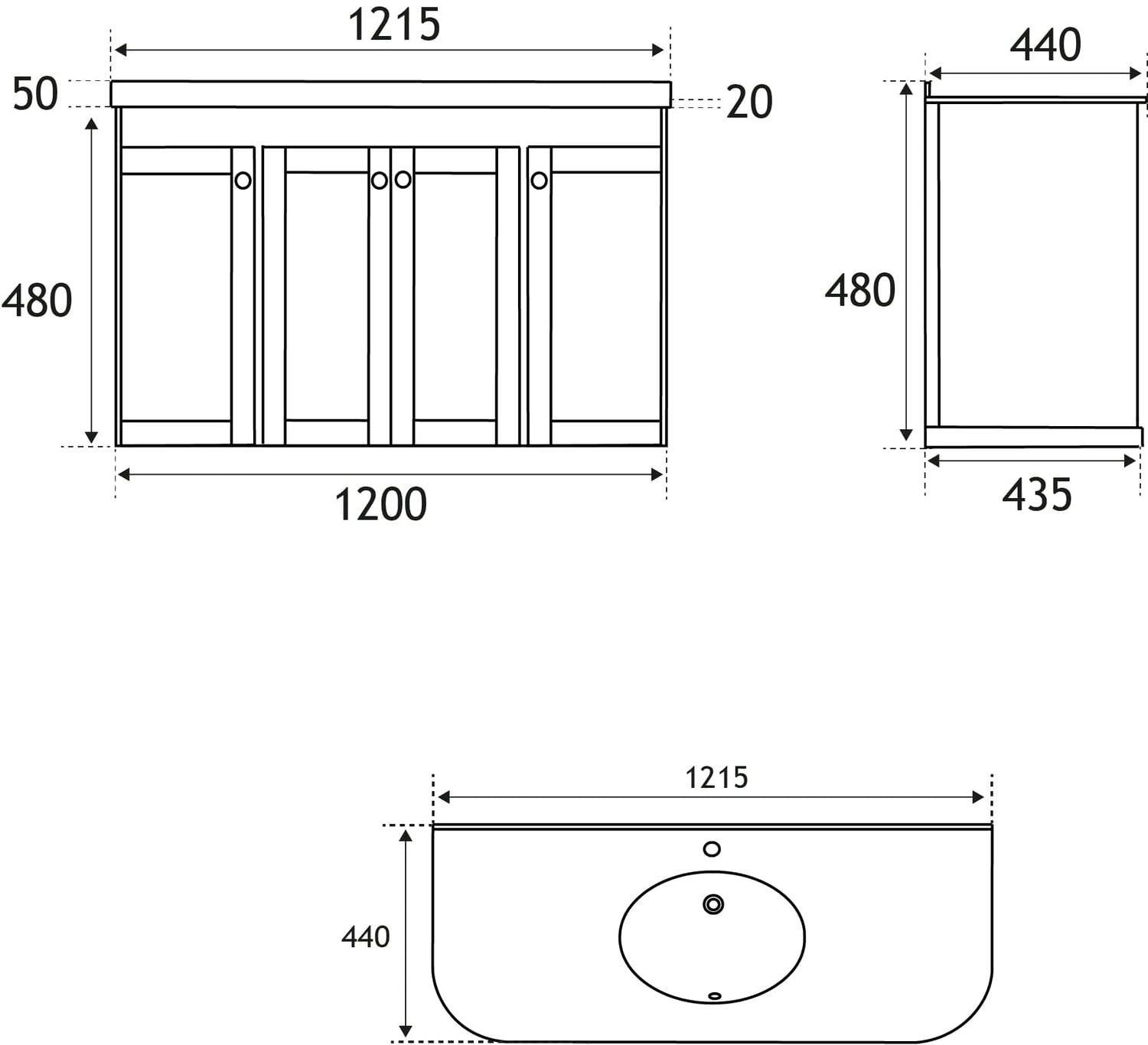 The 1200mm wall hung vanity unit has four soft close doors and features a luxurious basin design that flows perfectly with the traditional inspired curved lines and door panels. Choose from a polymarble or quartz double basin, both with one predrilled tap hole (one for each basin).