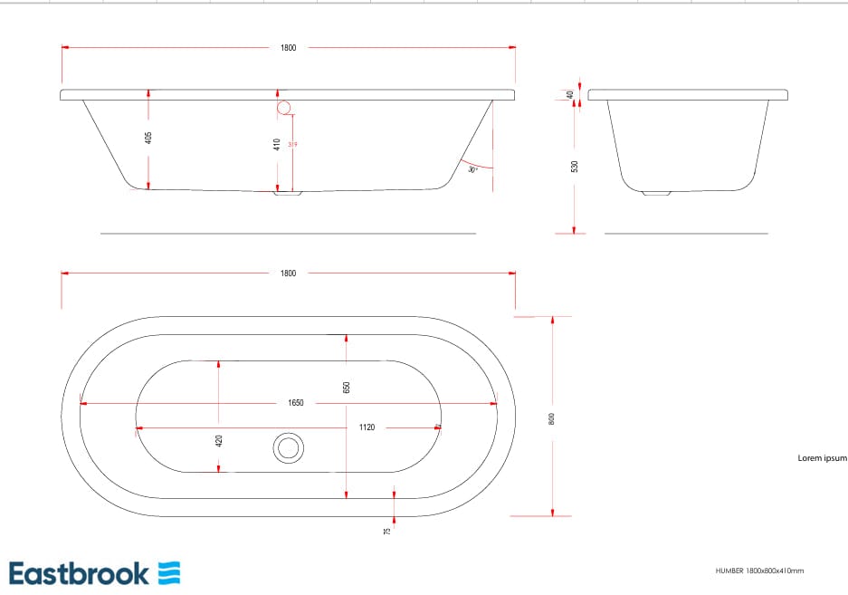 Eastbrook Modern Freestanding Bath 1800 x 800mm Eastbrook Humber Freestanding Bath