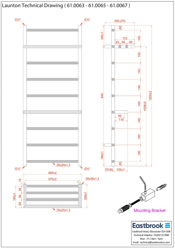 The Launton radiator from EASTBROOK is fabulous innovative design with its built in towel shelf which makes it an ideal choice for the larger family or just if you want that extra space. The shelf itself is also heated meaning more hanging space than most conventional ladder rails!