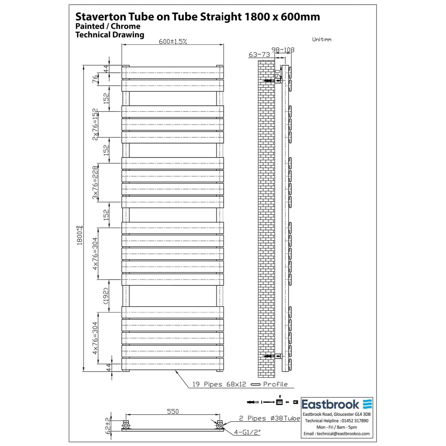 This listing is for an Eastbrook Staverton Tube on Tube Vertical Straight Heated Towel Rail 1800mm x 600mm in Chrome