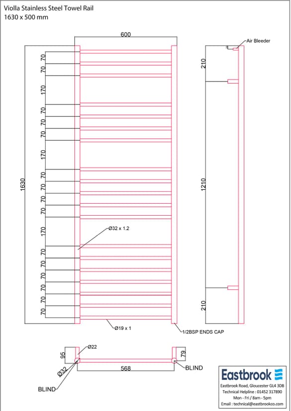 Eastbrook Violla Straight Vertical Heated Towel Rail