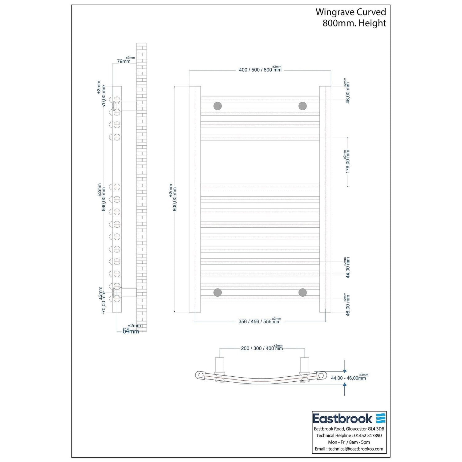 Eastbrook Wingrave Vertical Curved Heated Towel Rail - 800 x 500mm - Chrome