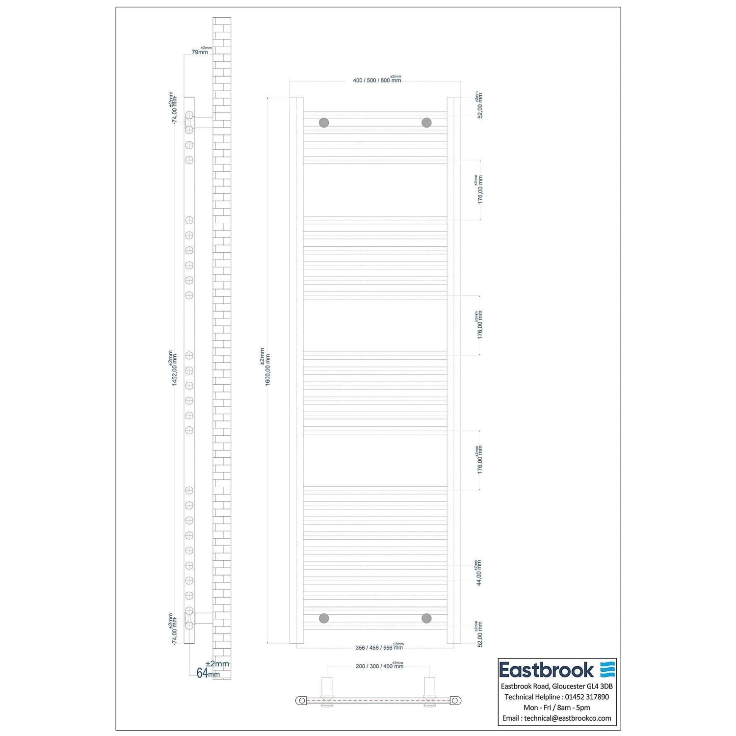 This listing is for an Eastbrook Wingrave Vertical Straight Heated Towel Rail - 1600 x 500mm in Chrome.