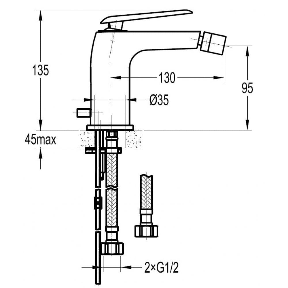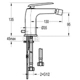 Flova Allore Bidet Mixer with Clicker Waste in Diamond Chrome
