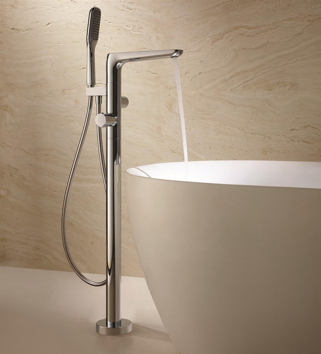 The Allore thermostatic floor standing bath and shower mixer in stunning diamond chrome finish is a striking addition to any contemporary bathroom, and pairs beautifully with a freestanding bath for a true style statement.