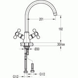 Flova Elegance Two Crosshead Handle Kitchen Mixer Tap with Swivel Spout in Chrome