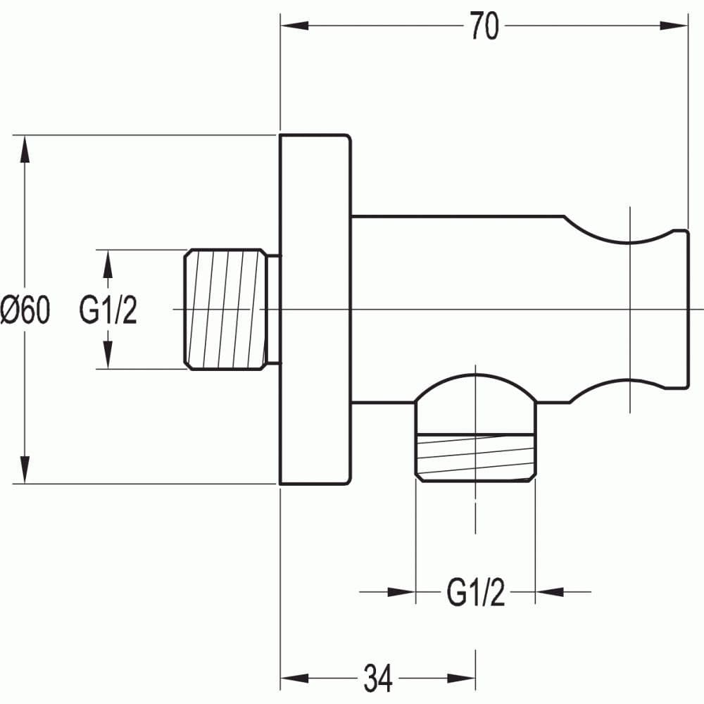 The FLOVA Round Outlet Elbow with Handset Holder combines two essential functions in one elegant design. It provides a discreet wall outlet for your shower hose while securely holding your handshower in place. Ideal for creating a clean, uncluttered look in any modern shower space.