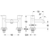 Flova Moonlight 2 Hole Bath Shower Mixer with Shower Kit