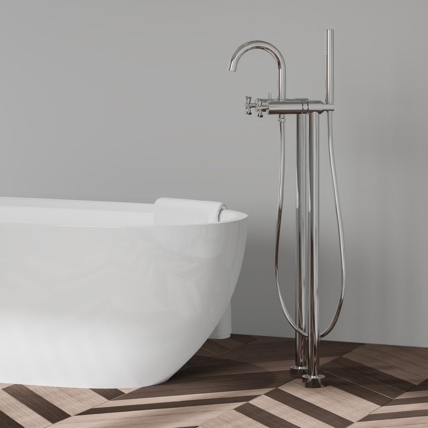Flova XL Floorstanding Bath and Shower Mixer Tap with Shower Kit in Diamond Chrome