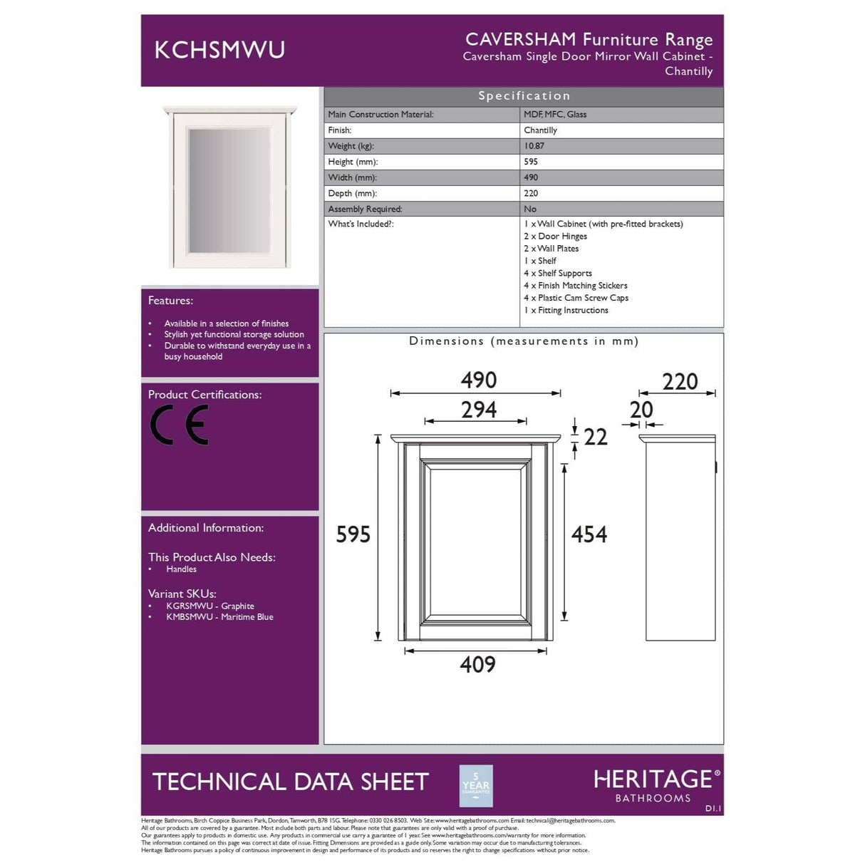 Heritage Caversham Single Door Mirror Wall Cabinet