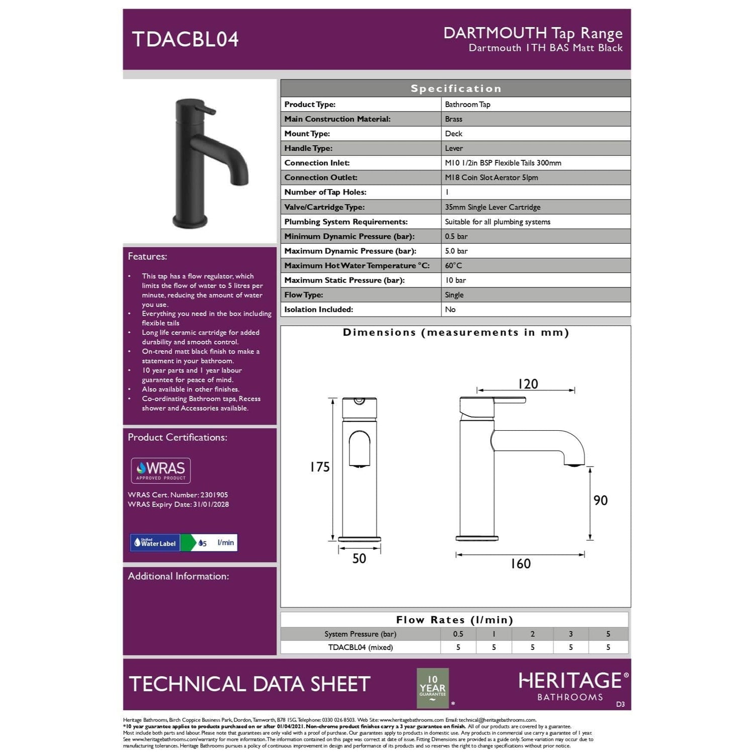 The Dartmouth Basin Mixer Tap has a sleek and simple silhouette, with a rounded body and gentle curves its elegant style makes it perfect for both contemporary and more traditional bathroom designs. This basin tap has everything you need in the box including flexible tails. Manufactured with long life ceramic cartridge for added durability and smooth control.