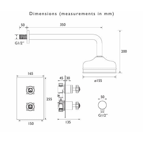 Heritage Dawlish Concealed Shower with Premium Fixed Head Kit