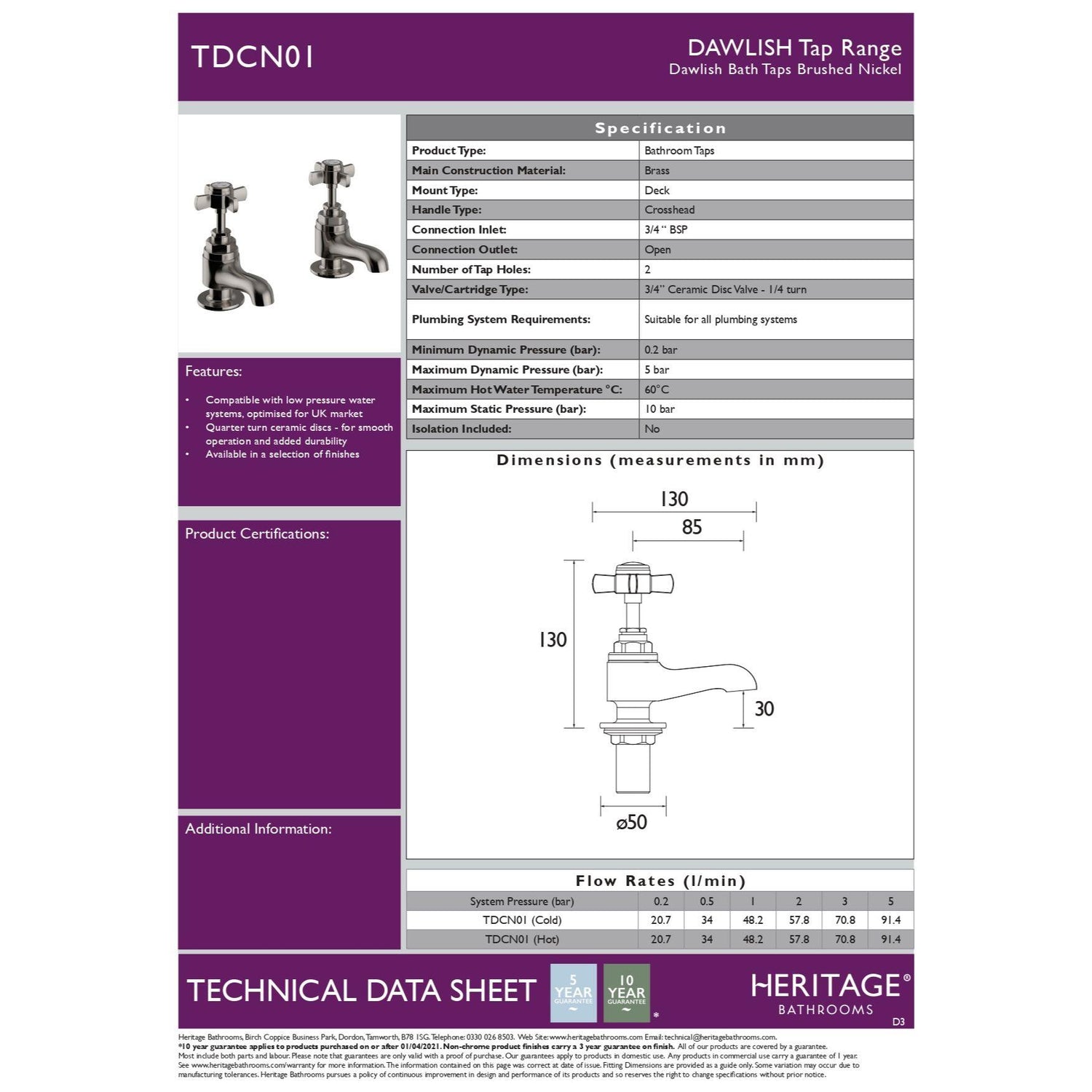 Heritage Dawlish Short Nose Basin Pillar Taps (Pair)