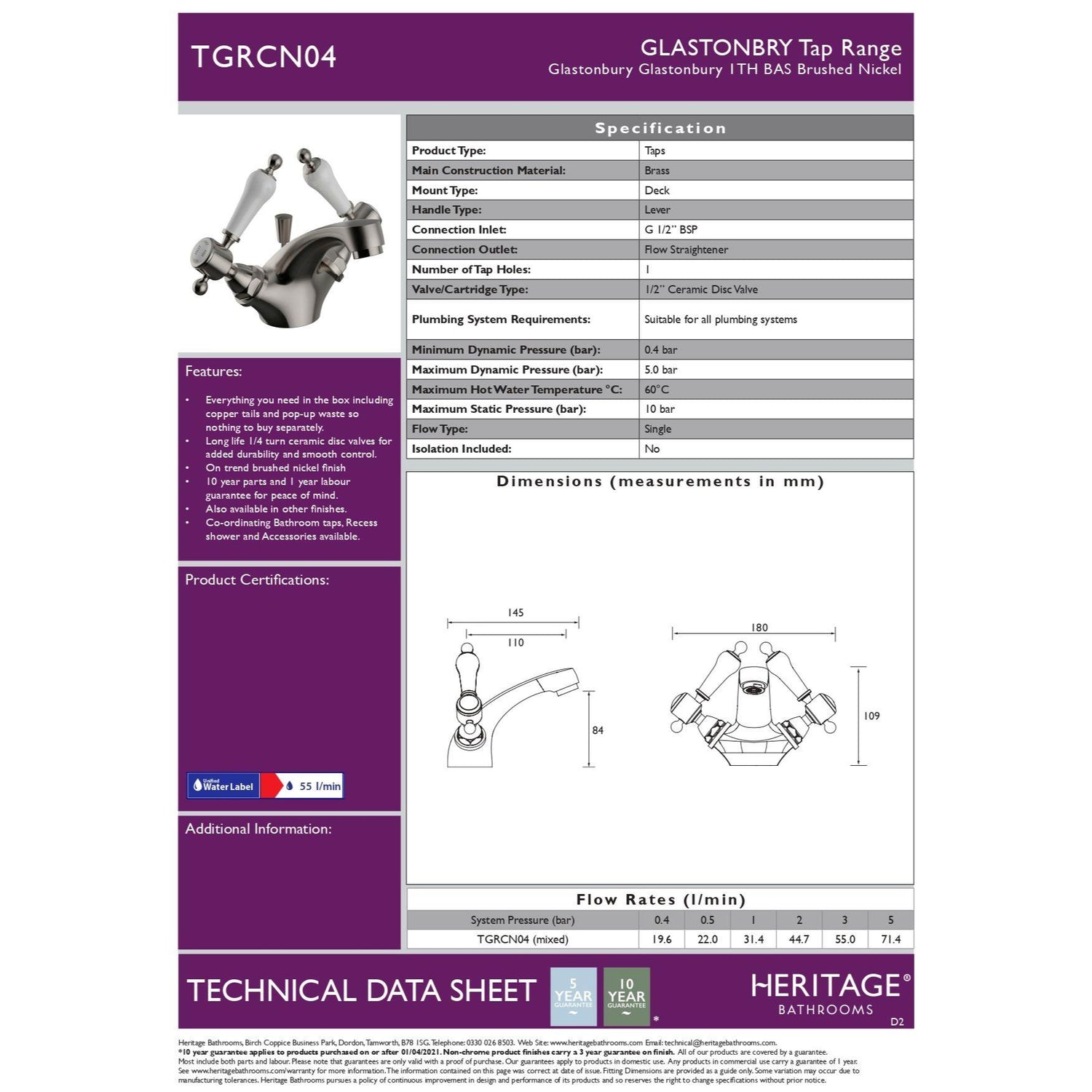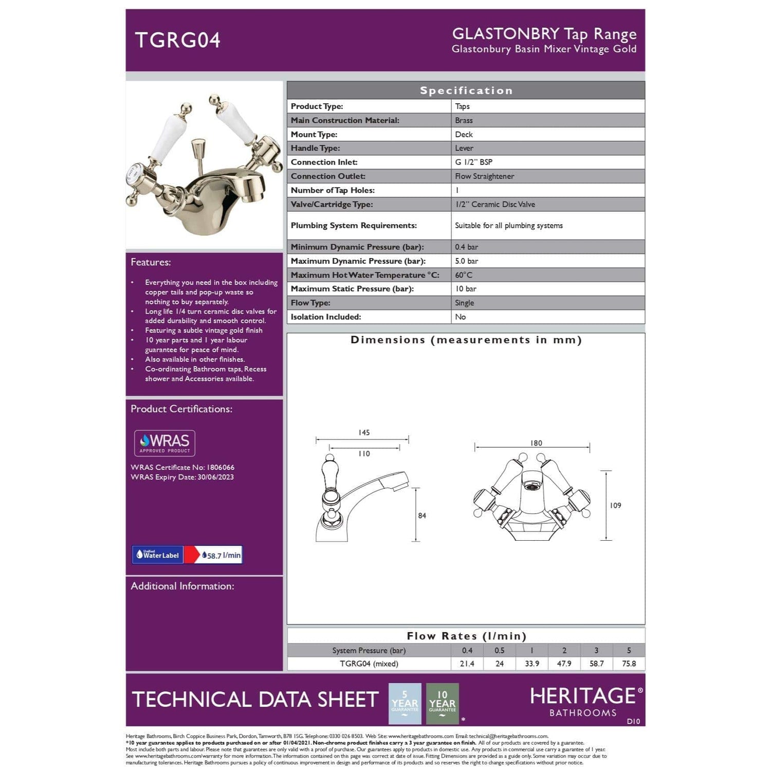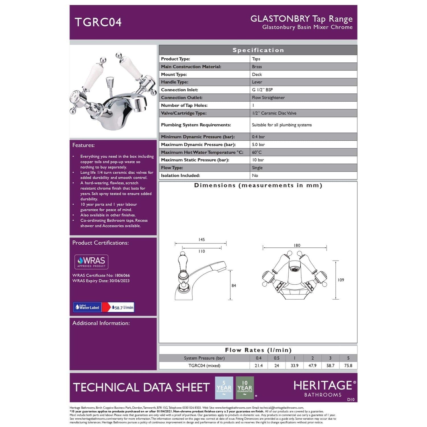 With their beautiful period design and elegant silhouette, the taps and fittings from the Glastonbury Collection are a beautiful addition to any traditional bathroom space. This basin tap has everything you need in the box including copper tails and a pop-up waste so nothing to buy separately. Long life 1/4 turn ceramic disc valves for added durability and smooth control.
