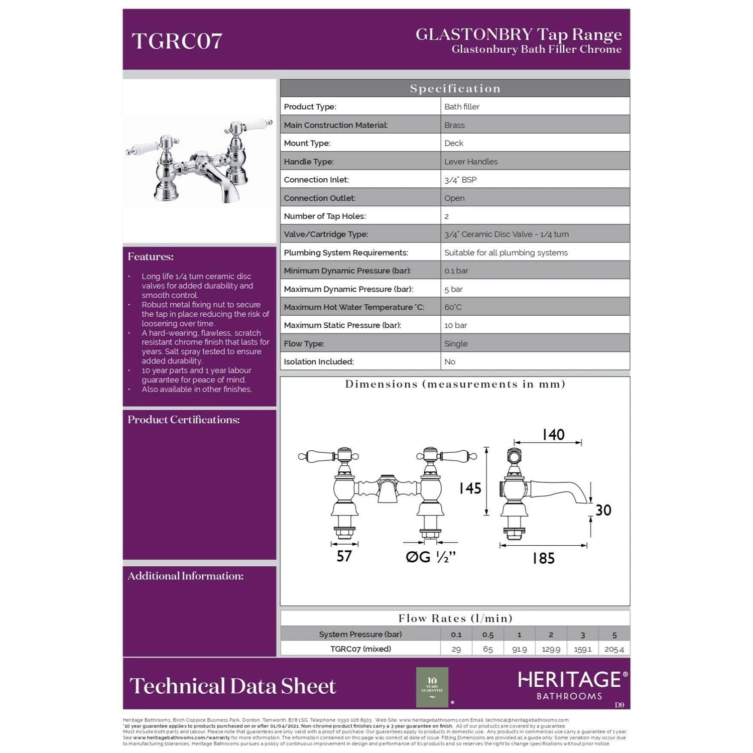 Heritage Glastonbury Bath Filler Tap in Chrome