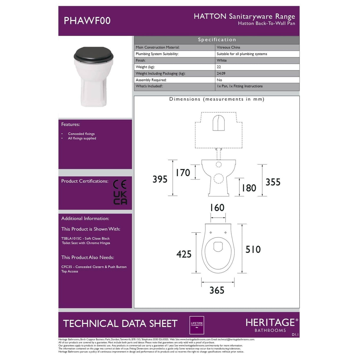 Heritage Hatton Back To Wall Toilet