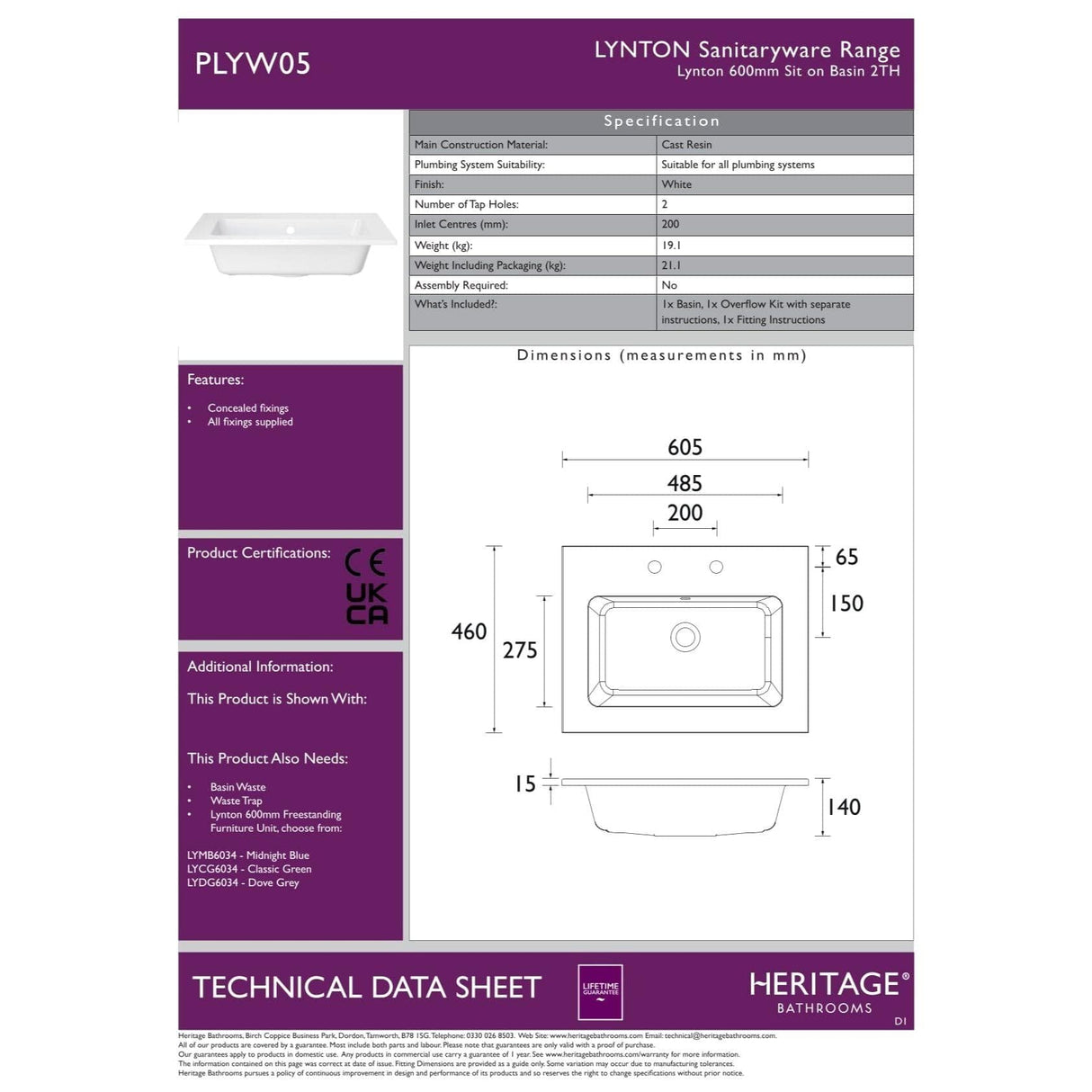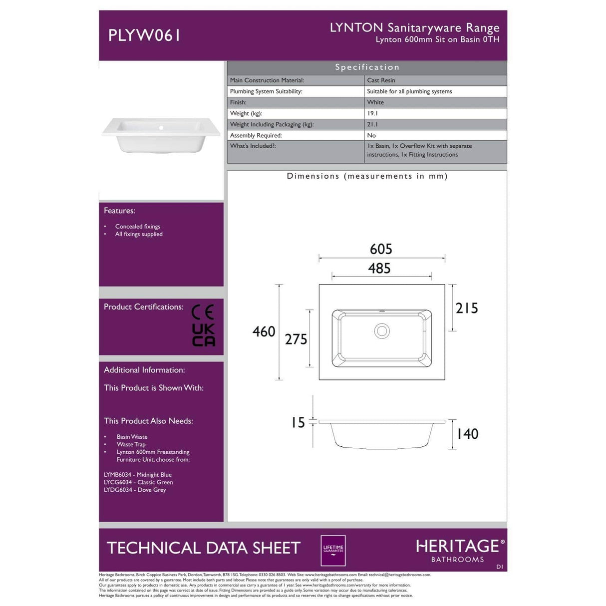 Heritage Lynton 600mm Floor Standing Vanity Unit with Basin