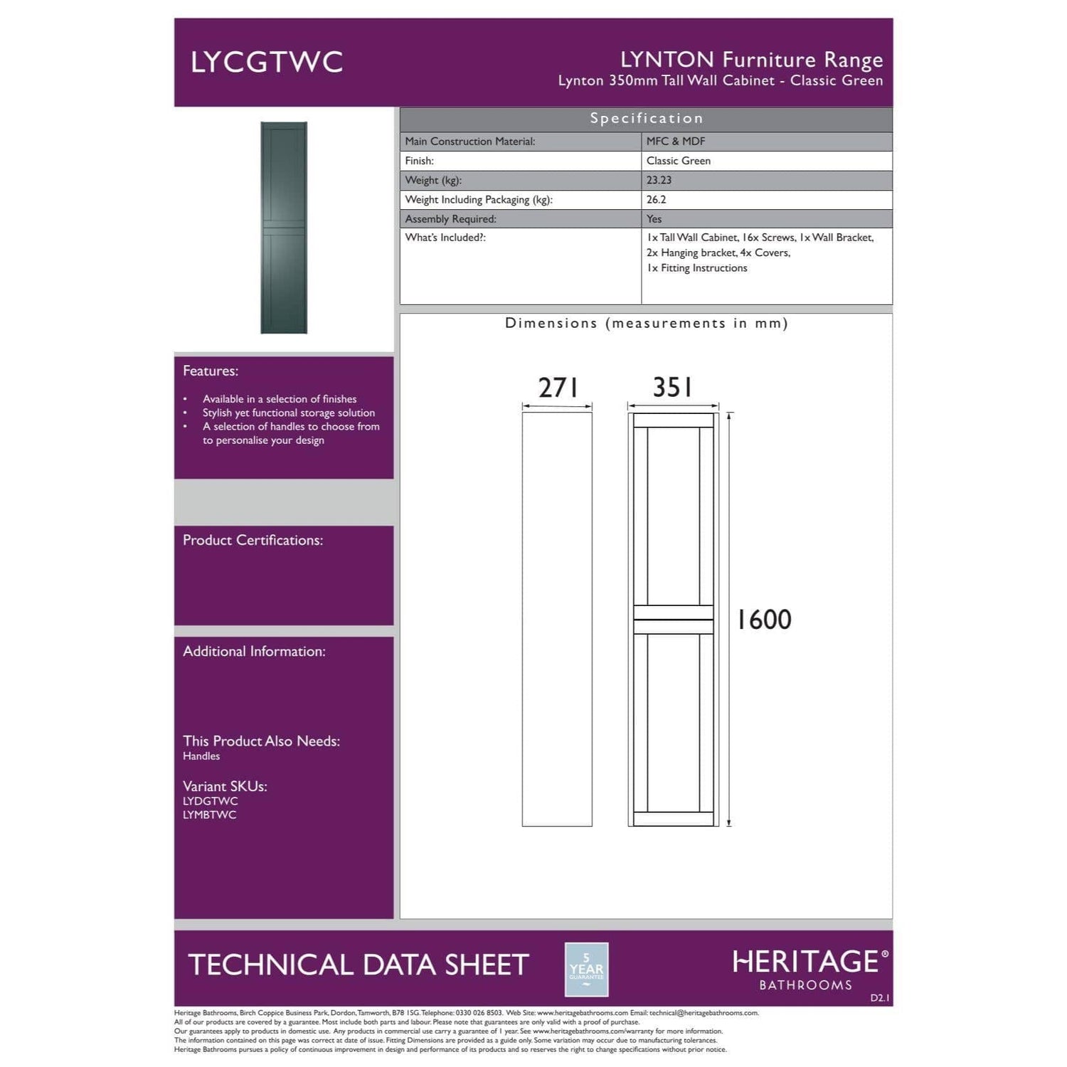 The Lynton Wall Mounted Tall Cabinet combines convenient storage space with a simple elegant design. The doors are soft closing and like all Heritage furniture can be fitted left or right-handed to give you a little more flexibility in your design, especially in small or awkward spaces.