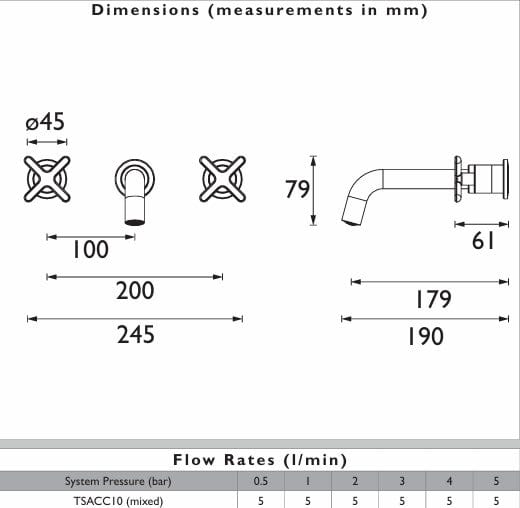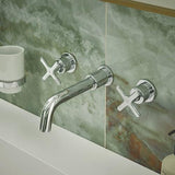 The Salcombe 3 hole wall mounted basin tap has a sleek minimalist design, with a modern take on the classic crosshead handle, making it suitable for both contemporary and traditional bathroom design. Pair with a countertop basin for a truly striking statement! It comes with Quarter turn ceramic discs, for smooth operation and added durability. This tap also has a flow regulator, which limits the flow of water to 5 litres per minute, reducing the amount of water you use. Good for the pocket and the planet!