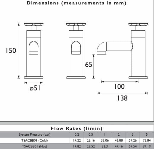The Salcombe bath pillar taps have an elegant minimalist design, with a modern take on the classic crosshead handle, making them suitable for both contemporary and traditional bathroom design. They comes with Quarter turn ceramic discs, for smooth operation and added durability.