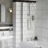 The Sherborne curved bath screen is compatible with all fitted baths. Can be universally hung, reversible for left and right handed fitting. Made from 6mm toughened safety glass and supplied with chrome hinges and fixings.