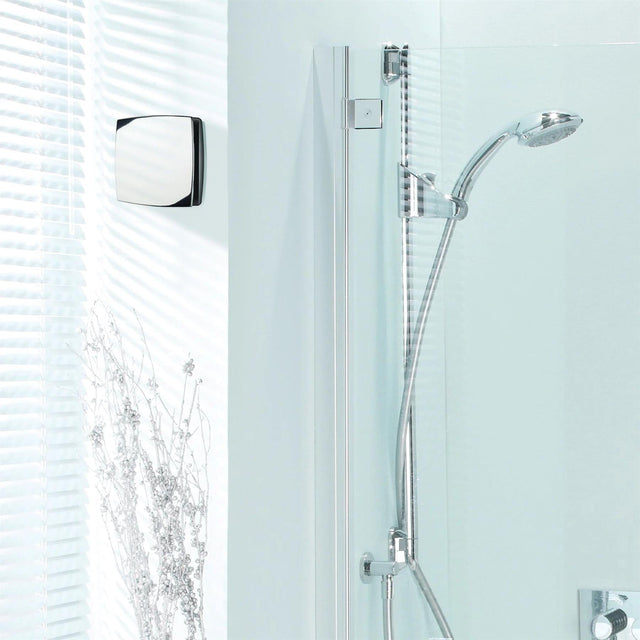 There are two different models in the range: with adjustable timer, or with adjustable timer and a clever humidity sensor that activates the fan automatically, before condensation has time to build. This versatile unit can be ceiling or wall-mounted and comes in a choice of three finishes: White, Chrome or Matt Silver.