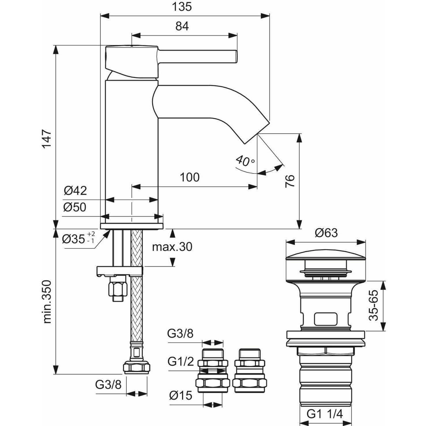 Ideal Standard Ceraline Single Lever Basin Mixer Tap with Clicker Waste in Chrome