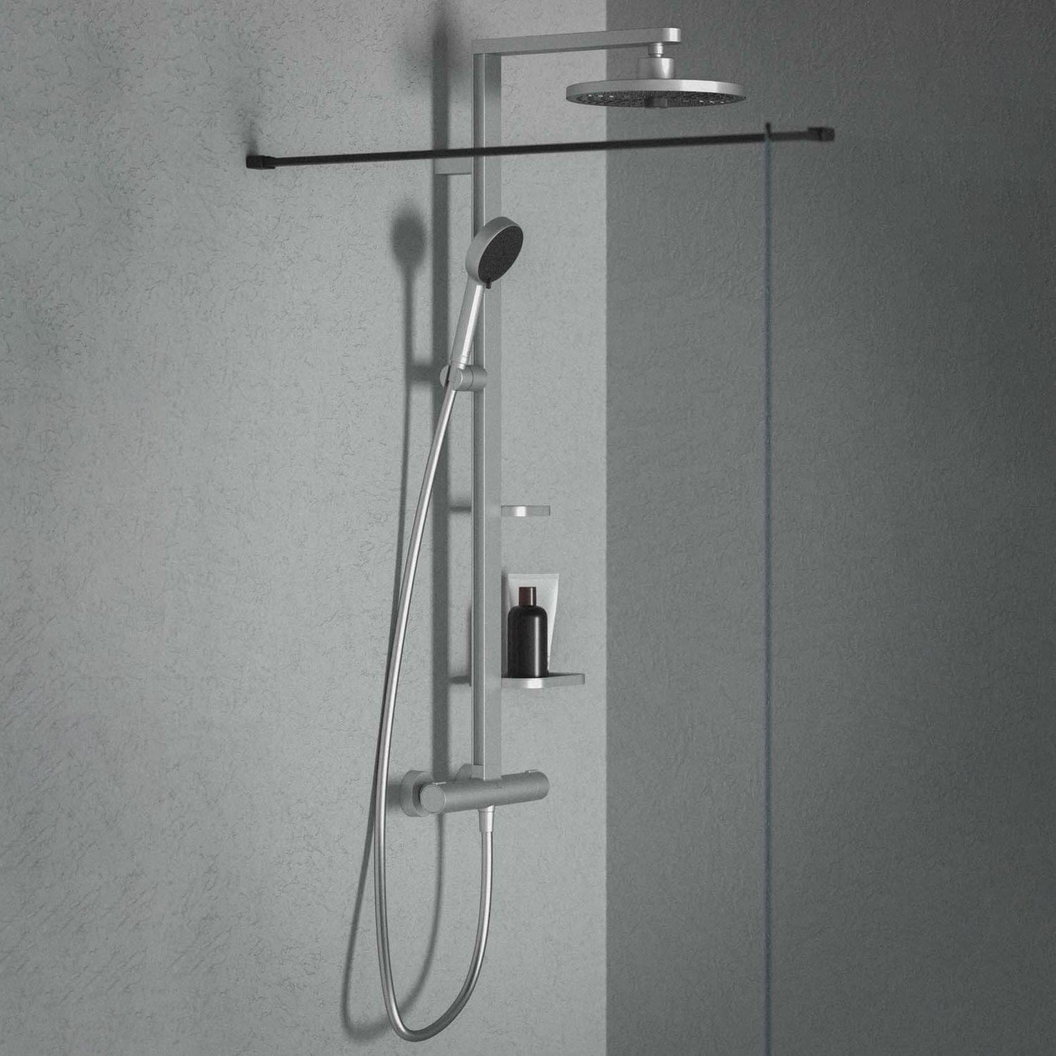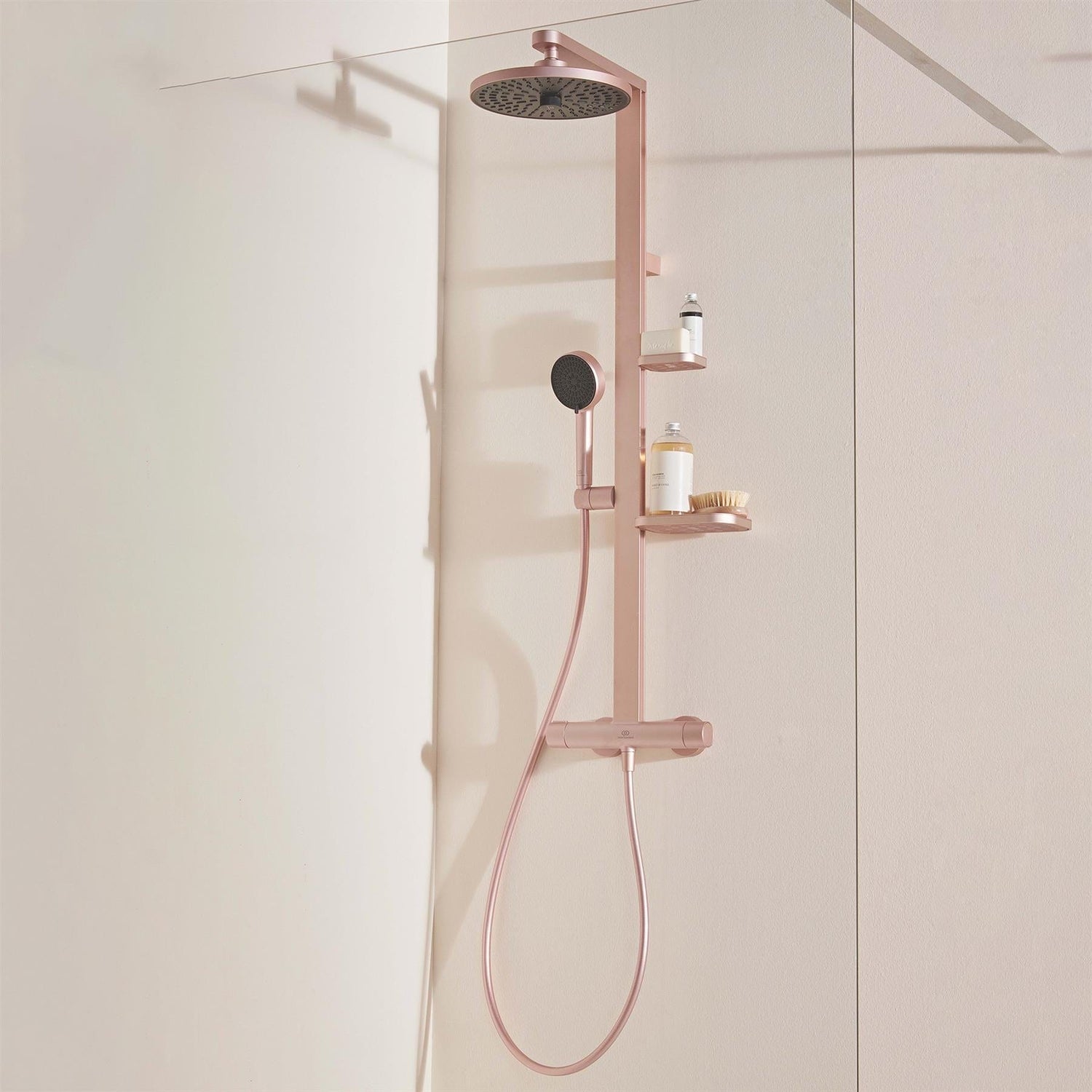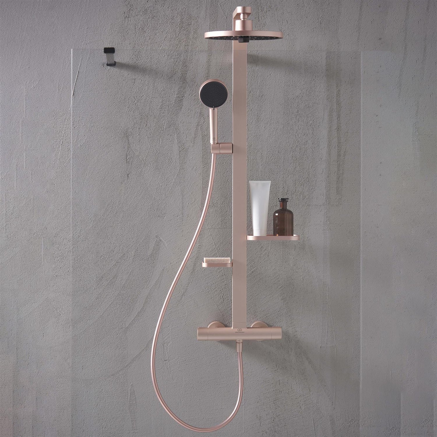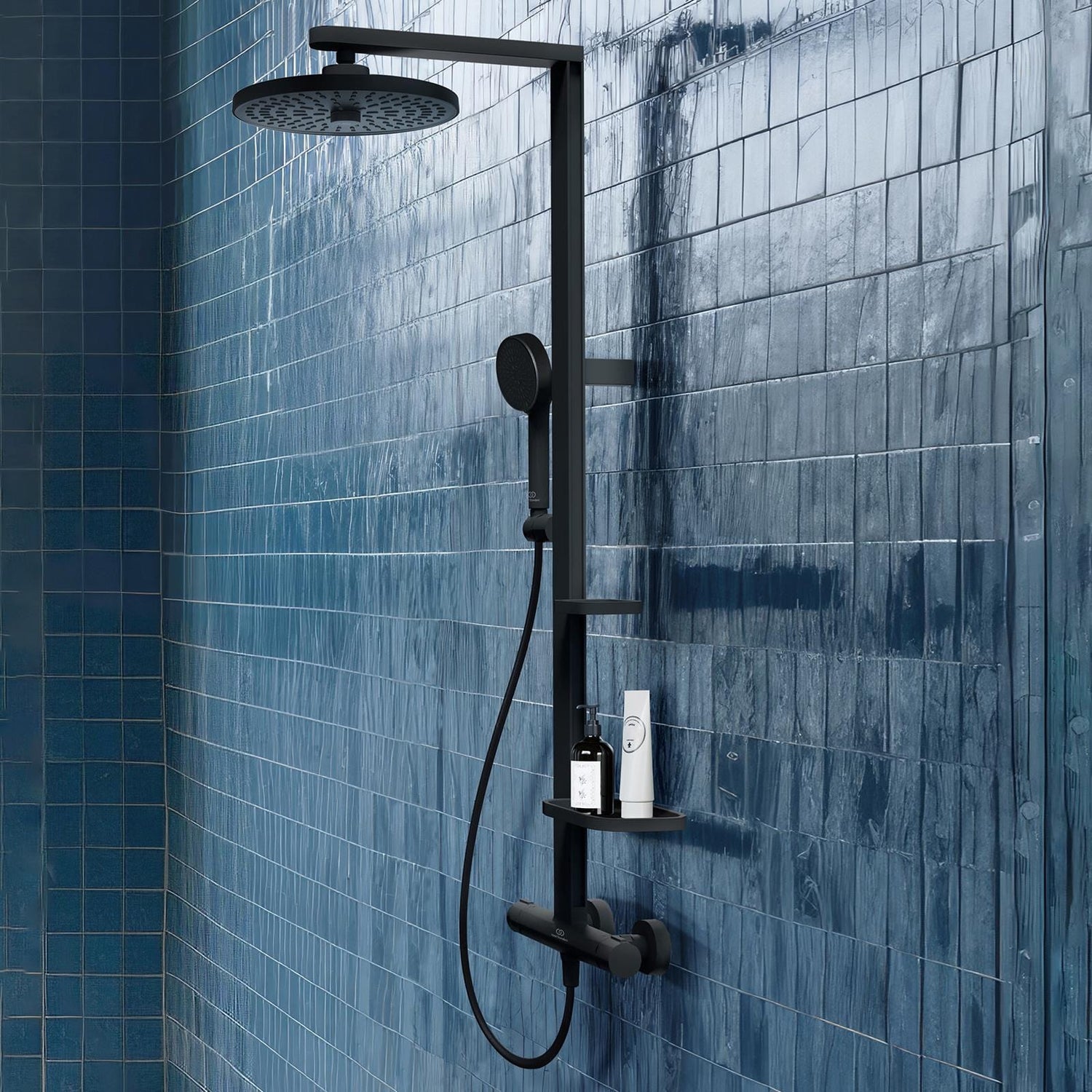 Ideal Standard Ceratherm ALU+ Exposed Shower Valve Set with Fixed Riser, Showerhead, Handset and Shelves